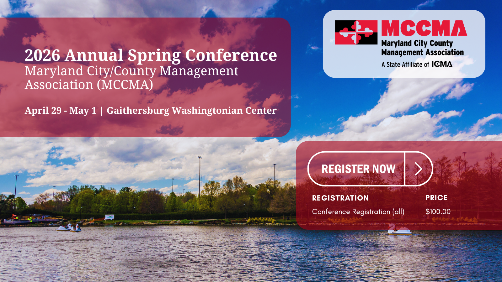 Welcome to the MCCMA Spring Conference 2026. Join us for a day filled with networking, learning, and fun. The event will take place starting on Wednesday, April 29 - Friday, May 1 at the Gaithersburg Washingtonian Center, MD. Get ready to connect with fellow local government professionals in the industry, attend informative sessions, and gain valuable insights. Don't miss out on this opportunity to expand your knowledge and grow your network. See you there!